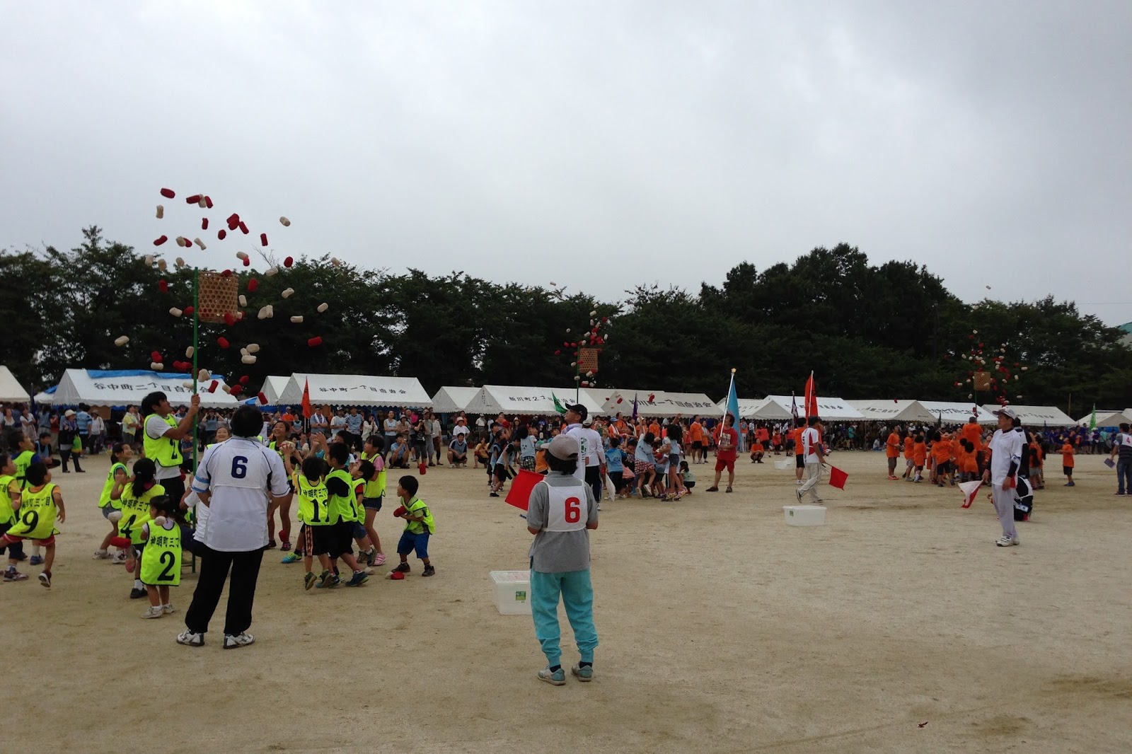 子供玉入れ(自治会対抗)。がんばれー 子どもたちぃー (^O^) |