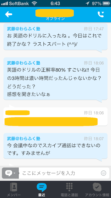 通常のフォローは、時々、スカイプのビデオ通話を使って、顔を見ながら実施し、特に最後には必ず、ビデオ通話で 「がんばったね」のメッセージを送ります。