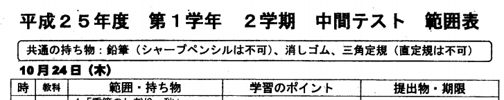 ある中1男子生徒が通う中学校の2学期中間テストまで、あと2週間になり、テスト範囲やワーク(課題)が書かれているプリントや学習計画表が配布されました。