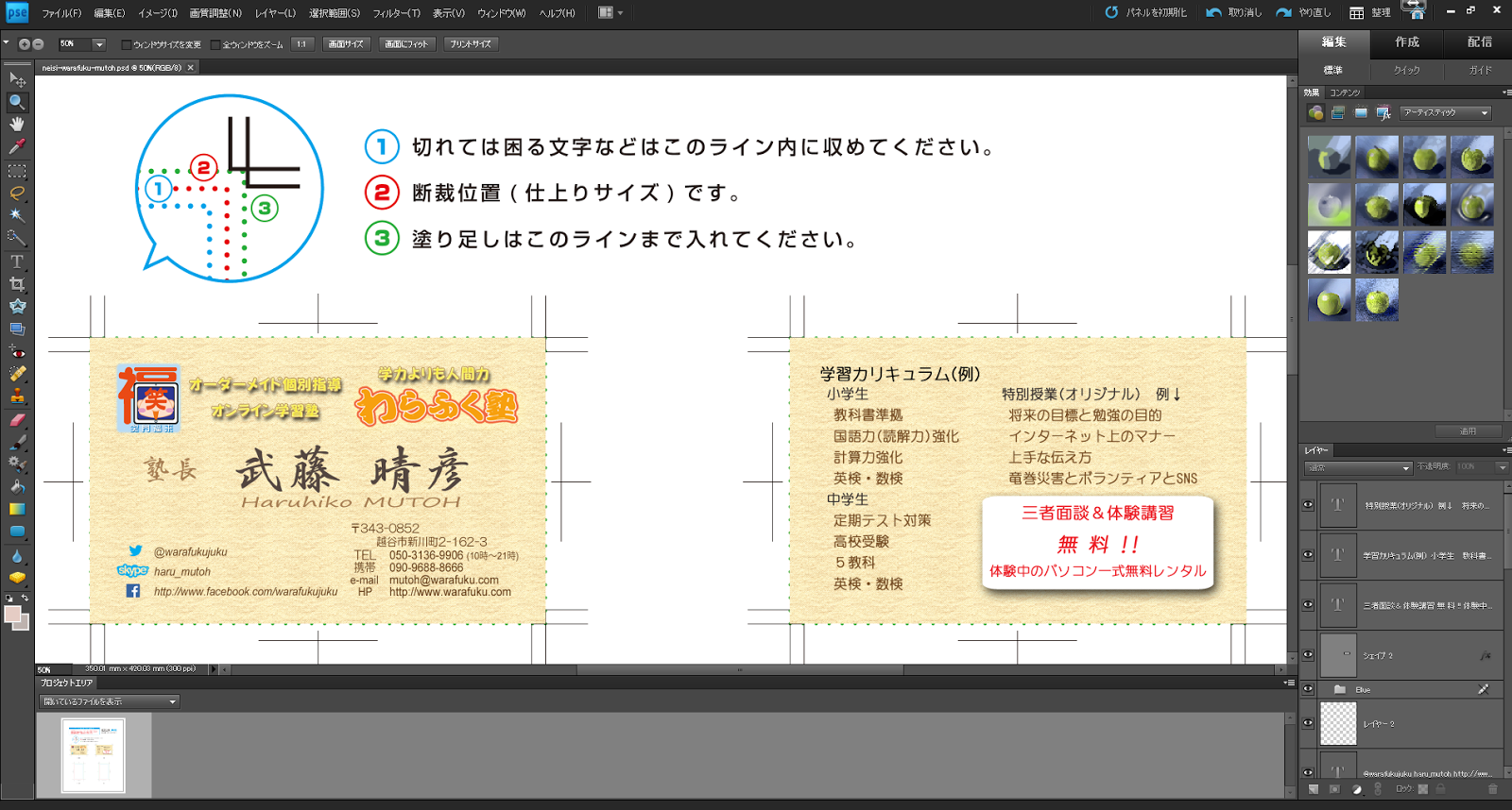 フォトショップでの名刺作成 |