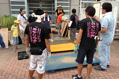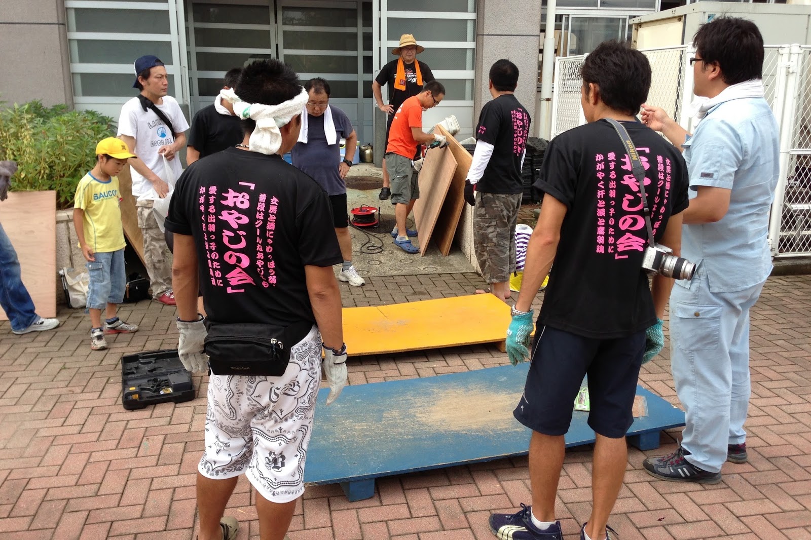 9時~ 小学校おやじの会によるジャンピングボード作成